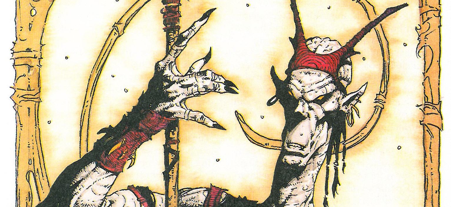 With many images re-used throughout various Dark Sun products, why this particular one wasn’t used anywhere else is anyone’s guess (though it being in color could be a factor). Looking back twenty years, all Brom work should be considered sacred and truly expressive of the setting. So it’s always odd when his work was found not to be used to the fullest extent possible (by which I mean as often as possible). This isn’t the first time his Dark Sun work was under-utilized (1,2,3) and it’s a shame this unique colored illustration from Brom was only found in a single Dragon article.